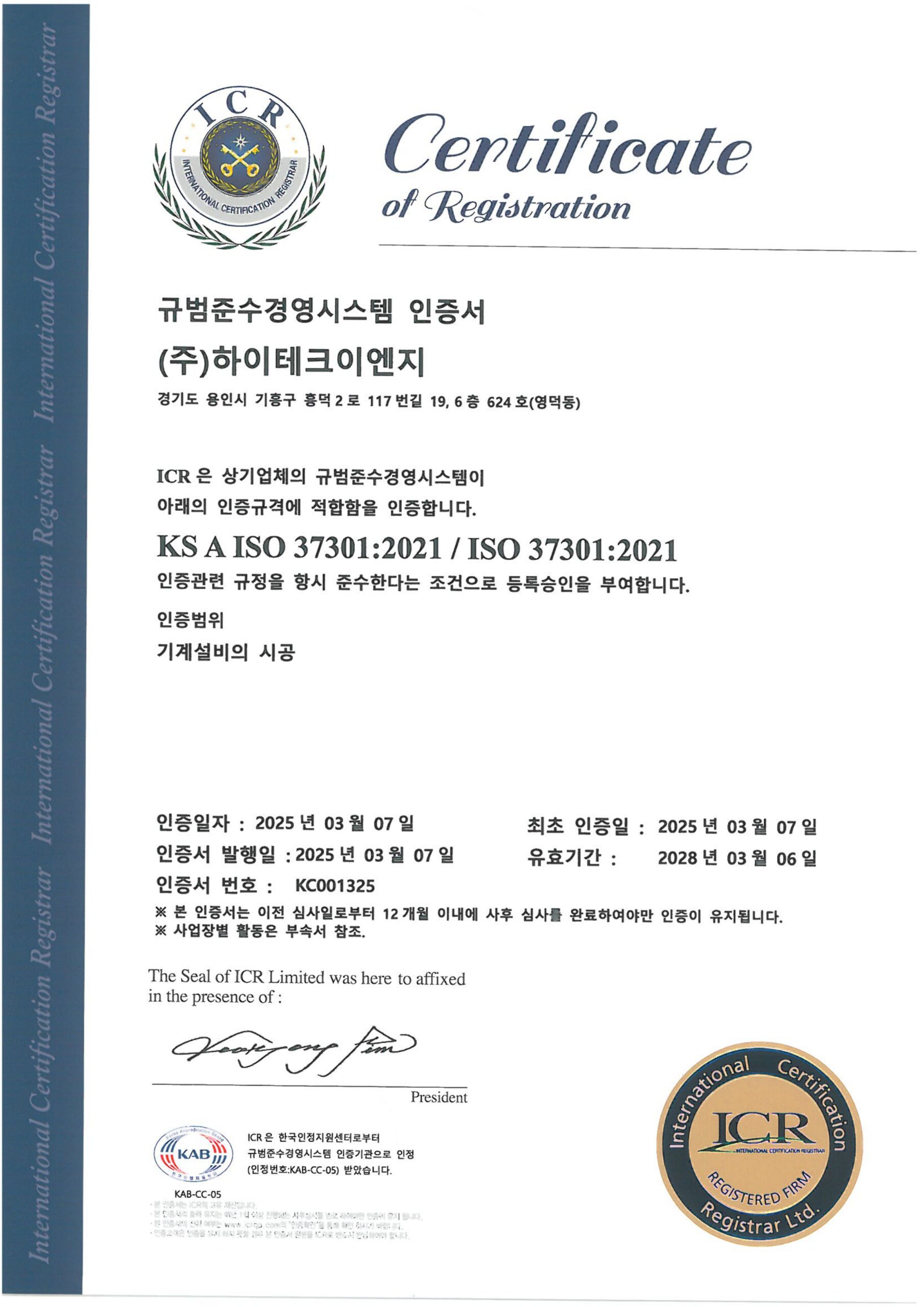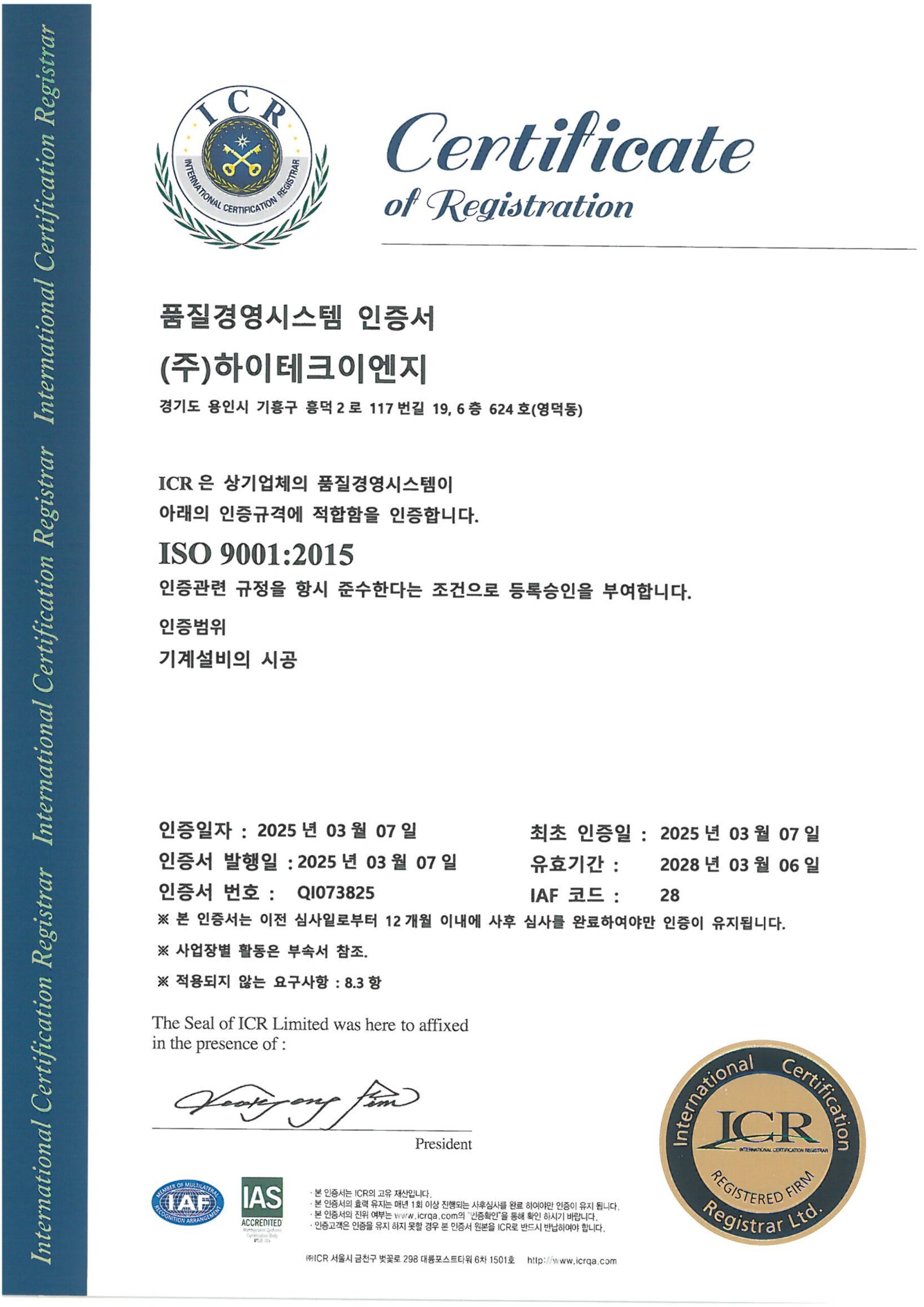하이테크이엔지는 고객이 언제든 찾고 싶어하는 믿고 신뢰받는 기업을 목표로 합니다.